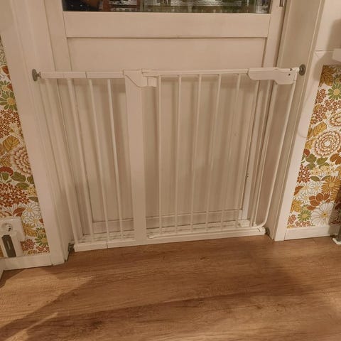 Passar till dörrhål/öppningar på ca 80 cm eller smalare. (går att göras mindre) Använt skick, lite repig men funkar fint.