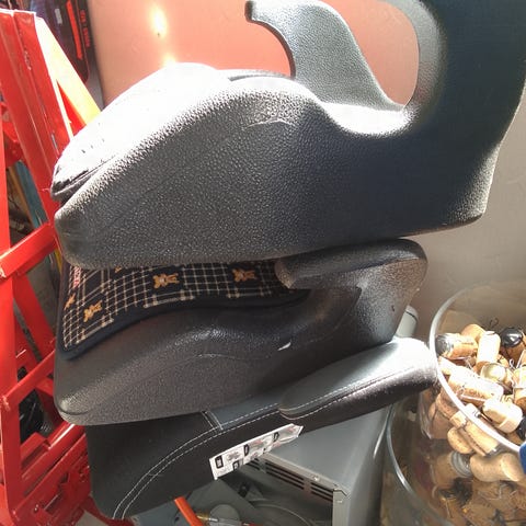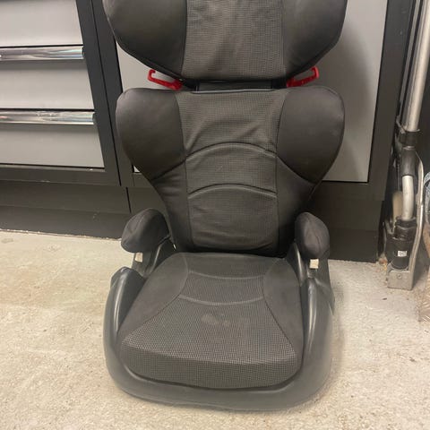 Ett par sätt bil barn stol till barn från vikt ca > ( 15. Kg upp till 36. Kg ) Bälteskudde i svart och grå färg. Tillverkad av plast och textilmaterial. Designad för att användas som en bälteskudde för barn i bil. Textil skyddet avtagbar för tvätt , ( 250.kr st ) finns i Västerås .