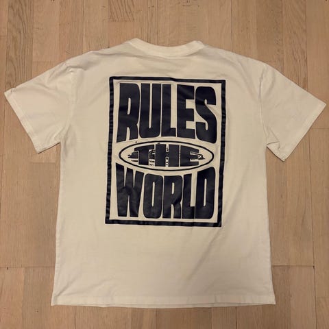 Vit t-shirt med trycket "LET THE SEA SET YOU FREE" och "KAPPA".