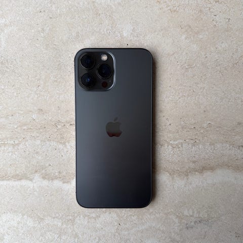 Apple iPhone 13 Pro Max mobiltelefon med 256 GB lagringskapacitet. Telefonen visar tecken på användning, inklusive repor på kanterna (kolla bild) men inga repor på skärmen.