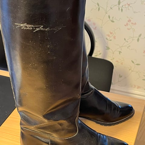 Pertti Palmroth finska allvädersstövlar i storlek 38, svart färg. Skorna har en glansig yta som blivit matt och dragkedja på sidan. De är använda därav priset. Se foton. Passar för dam.
