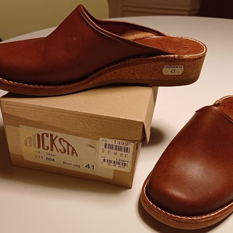 Tofflor nr. 47 av det välkända svenska märket Vollsjö säljs i absolut ny skick.