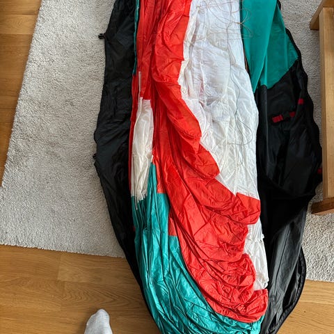 Aska A2 12, 12m2, Säker flyg/speedskärm för 60-70 kg kroppsvikt med sele o ryggsäck. Vikt (allt) ca 3,8 kg, fransk tillverkning, ca 9 år gammal