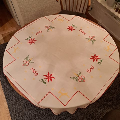 Äldre/vintage Julduk / löpare i rött o vitt bomull, ca 34x135 cm