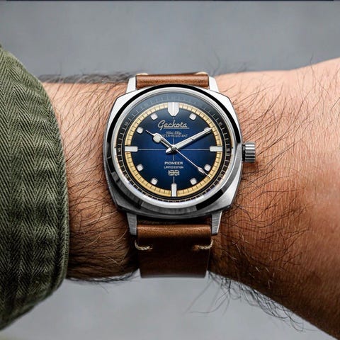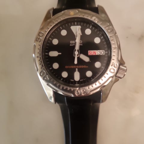 En rejäl dykare i mycket fint skick, knappt använd. Högt värde med bra urverk från Miyota, safirglas, mikrojustering av armband. Se tillverkarens data https://zeloswatches.com/products/great-white-v2-300m-antique-green. Kommer med trevligt fodral för tre klockor. Ovanlig, nr 218 av 300 tillverkade. Kvitto finns.