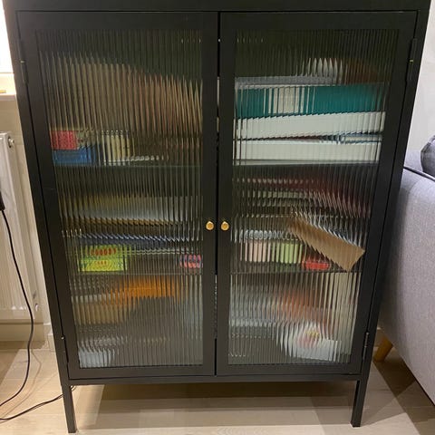FABRIKÖR vitrinskåp från IKEA, inköpt 2018. Justerbara ben och låsbar. Sparsamt använd och därav i fint skick.
