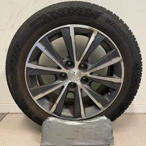 Säljer ett mycket fint set vinterdäck med aluminiumfälgar, tidigare använda på en Peugeot 308, årsmodell 2017.