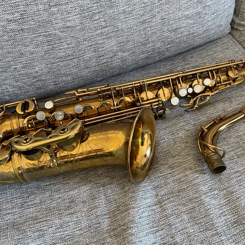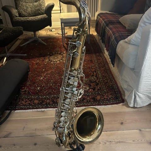 Säljer min mark 6 tenorsax med serienummer 134xxx (1966) i gott skick, redo att möta publiken. Saxofonen har fräscha putor och spelar jämnt över hela registret med en varm, stor ton med briljant edge. Den har det där klassiskt lyxiga "selmer soundet" som dessa lurar är så kända för. I mekaniskt bra skick, skrapmärken, mindre pings och återlödningar finns det spår från, saxofonen är trots allt snart 60år gammal. Välkommen att provspela den, jag kan mötas upp i Uppsala eller Knivsta om du ej kan komma till mig i Almunge.