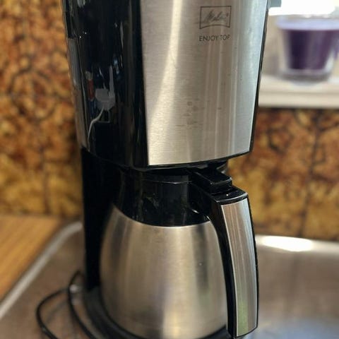 En robust kaffebryggare Melitta Enjoy Therm, med "inbyggd" termoskanna, som håller kaffet varmt under hela fikastunden. Kapacitet; 12 koppar. Kannans rymd; 1 liter. Modern design.