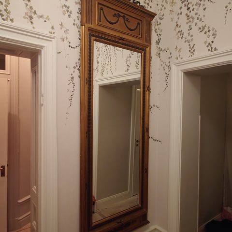 En stor fin antik kroppsspegel som behöver lite kärlek. Den har levt i alla mina hem de senaste 15 åren och ramen är nu lite lös / skadad. Om man är händig så löser man det på ett kick.