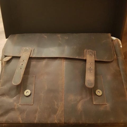 Portfölj från välkända Bartuggi köpt i Ioannina med flera fack enligt bilder och nyckel till lås. Personligen har jag aldrig sett en snyggare skinnportfölj.