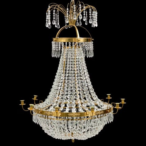 LJUSKRONA rokokostil burformad stomme behängd med olikformade prismor 1900 talet