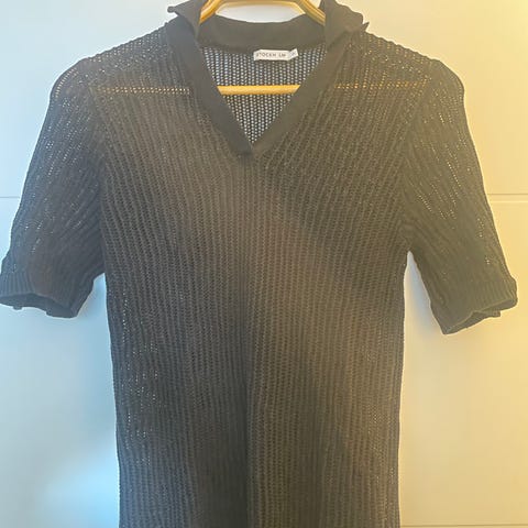 Stockh lm blus i storlek L med flerfärgat blommönster. Glansigt material.