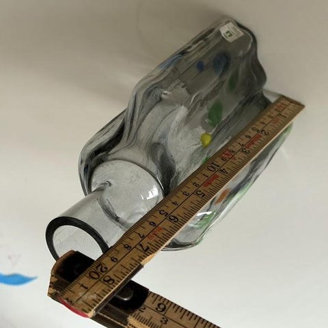 Kosta Boda glasvas med gröna dekorativa inslag. Vasens design innehåller färgat glas och luftbubblor inneslutna i klarglas.