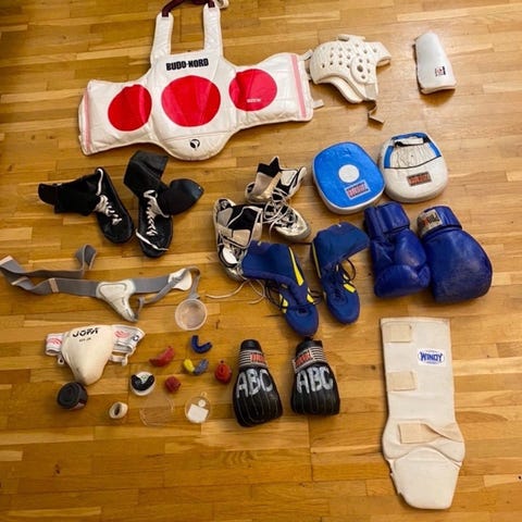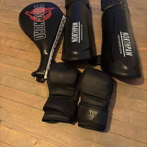 Mycket fint skick, använda få par gånger, storlek L på knäskydd. Båda säljs i paket pris.