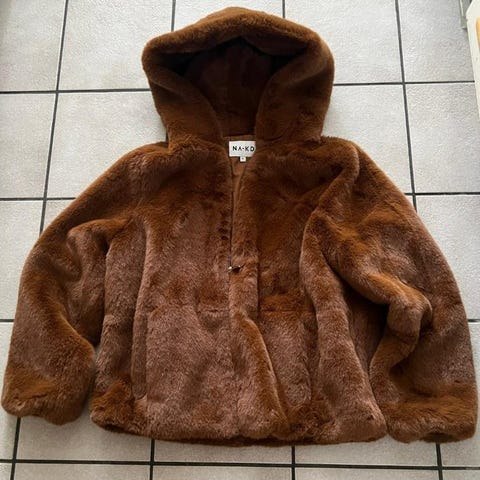 NA-KD Vinterjacka i storlek S/M för dam. Jackan är svart och tillverkad av fuskpälsmaterial. Den är avsedd för vinterbruk och erbjuder värme och komfort under kalla förhållanden.