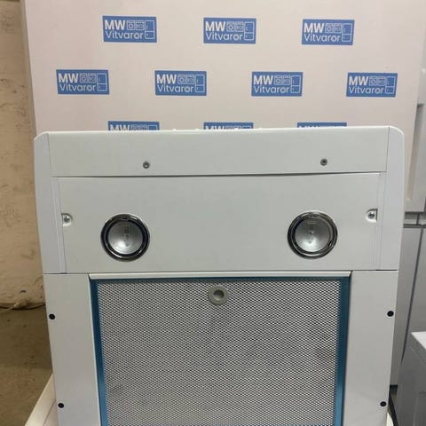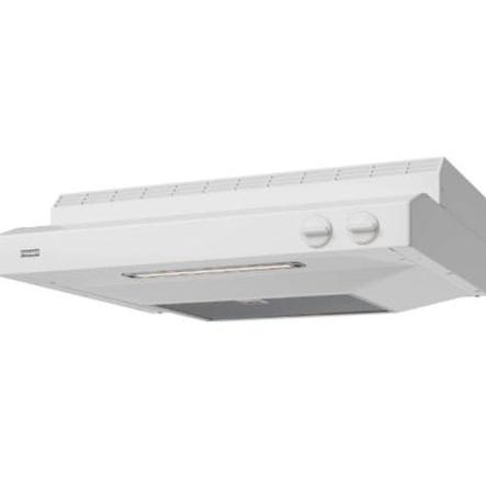 Den är utdragbar med frontlist i silver, fläkt för fastigheter med möjlighet att ansluta till en separat ventilationskanal från kök. 60 cm bred, vit, aluminiumfilter, 3 olika hastigheter på fläkten.
