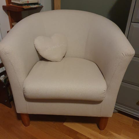 Se bild, tidens tand gnagt på främre armstöden i övrigt i bra skick.