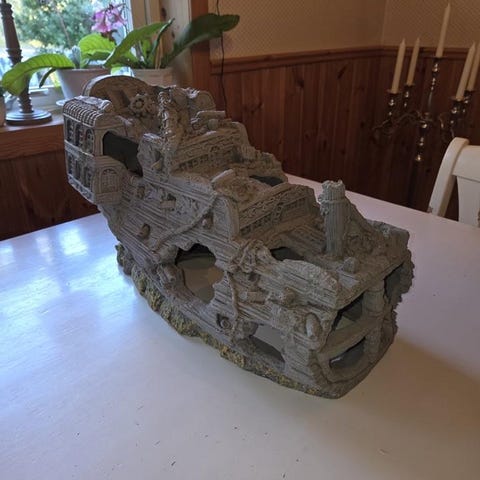 Snygg och naturtrogen akvarie-/terrariodekoration i äkta trä med en sten naturligt inbäddad i mitten – ett helt unikt exemplar! Perfekt som centerpiece och ger samtidigt bra gömställen för fiskar och räkor.