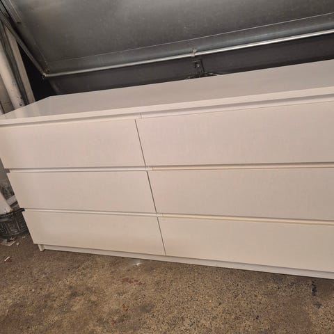 Malm svart byrå med 3 djupa lådor, finns i Årsta nära Gullmarsplan
