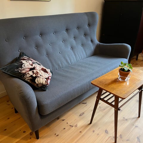 Blå soffa i klassiskt tyg