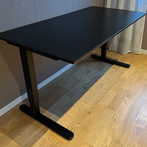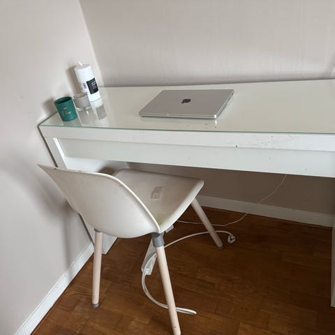 Skrivbord i fint skick. Ett av de sex benen saknar en fot men skrivbordet står stadigt.