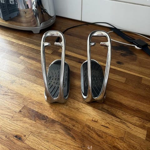 Säkerhetsstigbyglar i aluminium med bred platta på 6,5 cm.