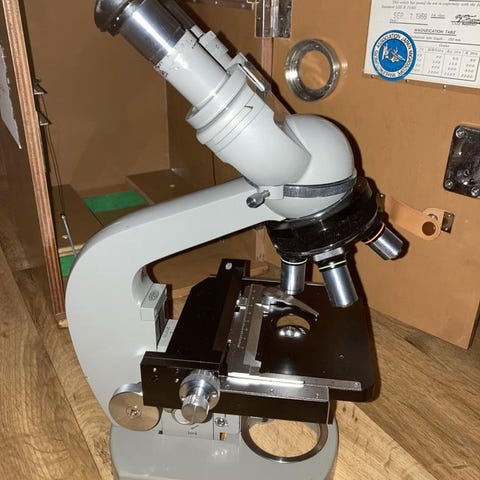 Leitz Wetzlar Mikroskop metall och trä