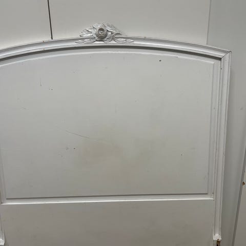 Trä sänggavel i mörkbrun färg med dekorativt mönster upptill. Passar sängar med bredd 160 cm. Materialet är trä.