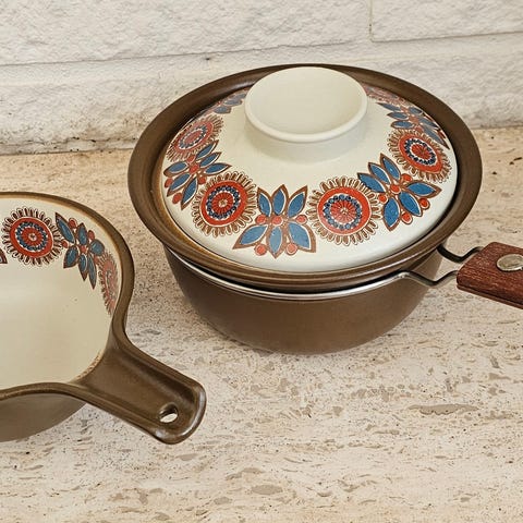 Vintage Figgjo Flameware stekpanna – dekor Astrid (Norge, 1960–70-tal)