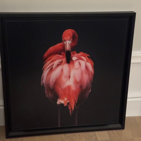 Svart träram 125x160cm, tjock akrylglass, 2 mm syrafri passepartout. Bara inramningen har kostat 7 000 kr (se kvitto).