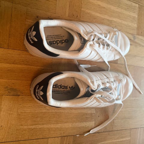 Adidas Superstars Sneakers i storlek 46 med vinröd och vit färg. Skorna har en klassisk design med snörning och så kallade "shell toe". Säljer iväg dom pga av att dom är för små. Jag ville så väldigt gärna ha dom, men det går inte.