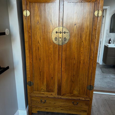Ett riktigt fint och gediget skåp. Köpt i inredningsbutik i Stockholm. Det finns inga fläckar på skåpet utan det är solen som skiner in och gör att det ser fläckigt ut😊