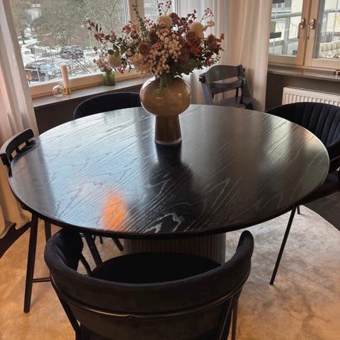 Santos Matbord med måtten 140x90x75 cm. Bordsskiva i trä och ben i svart material. Passar för matplats och vardagsrum.