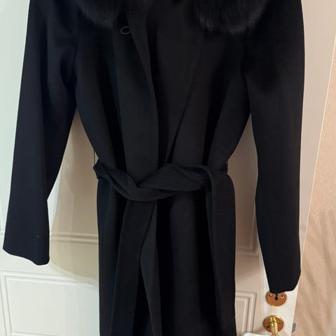 Hollies kappa i svart färg med äkta pälskrage. Passar dam och är i storlek 40. Kappan är tillverkad i material som inkluderar päls, vilket ger extra värme och stil. Lämplig för kyligare väder. Kappan var märkes Hollies Stockholm men kunde inte hitta märket i beskrivningen, köpt för 4500 kr säljs för 2300kr