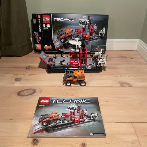 Lego Technic 42002 Svävare. Propellern drivs runt när svävaren glider på golvet. Kan även byggas som ett flygplan.