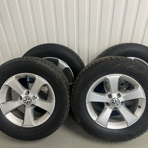 Fina dubbdäck använda 2 säsonger på aluminiumfälgar. Däcken har suttit på VW Tiguan, men passar dom flesta andra VW, Audi eller Skoda.