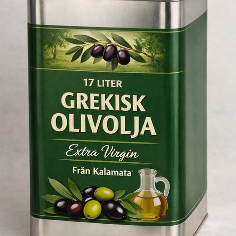 Grekisk extra virgin olivolja eget importerat från Andriotis, Corfu Grekland.