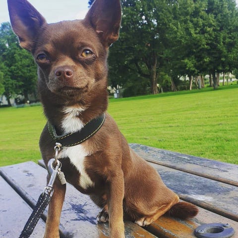 Tjena! Jag är en 3-årig chihuahua-hane, lagom blandning av korthårig elegans och långhårigt fluff – alltså det bästa av två världar.
