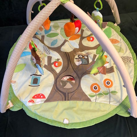 Babygym från Skip Hop i fint skick med medföljande spegel, leksaker och kudde. Alla ursprungsdelar ingår. Syns att den har tvättats men annars i bra skick.
