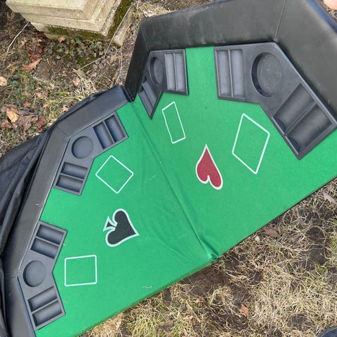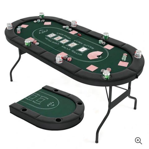 Säljer mitt professionella pokerbord i toppskick. Oval modell för 10 spelare med racetrack i mahognylook, svart mönstrad speed cloth, bekväm vadderad rail och rostfria mugghållare. Stabil konstruktion med vikbara ben – perfekt för Texas Hold’em, Omaha och hemmaturneringar. Nypris runt 10–14 000 kr.
