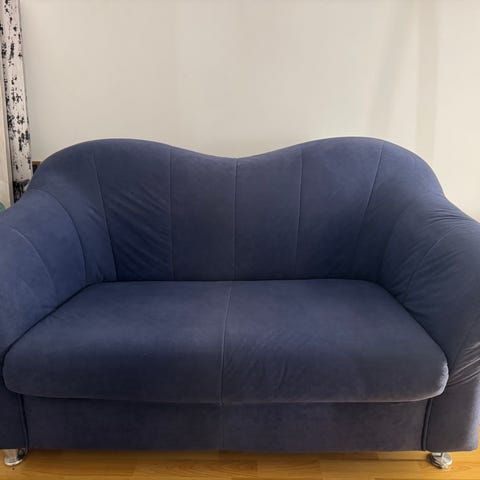Tvåsitssoffa i grönt tygmaterial. Soffan har två sittdynor och två ryggkuddar. Passar för vardagsrum och andra sittutrymmen.