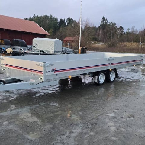 Stor vagn med bra lastyta och lågprofils däck. Kan även användas för maskiner. Finns ramper att komplettera med