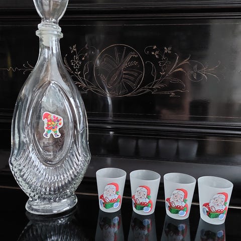 Lindshammars husets vinkaraff, glas och lykta.