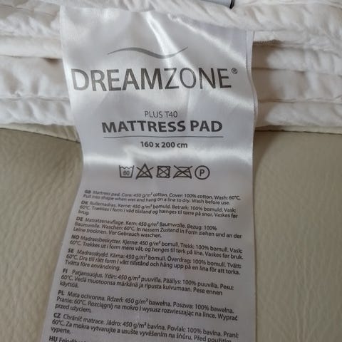 Kokäkta madrasskydd 180x200 cm med mjuk, tjock quiltning av silikoniserad hålfiber (100% återvunnen). Elastiska hörnband.