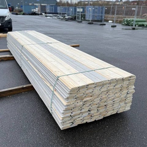 Yterpanel mellan vit 22x120 58st 4,2 lm, 22x145 29 st 4,2 lm 22x95 25 st 4,2 lm 28x95 4st 4,8lm bärläkt 25x36 25st 4,2lm
