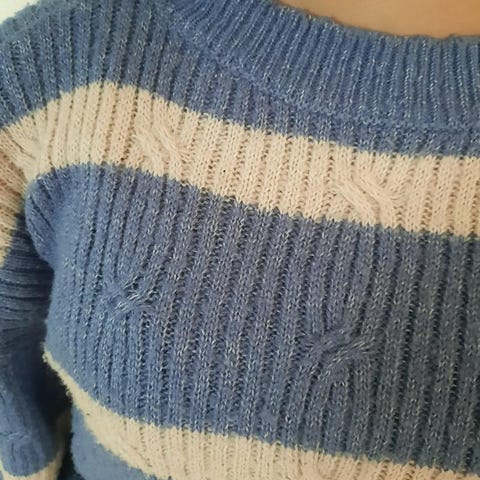 Tröjan är stickad i ett mjukt garn inte ylle.