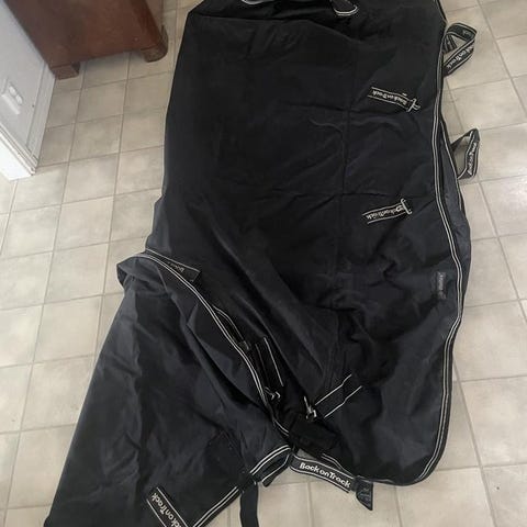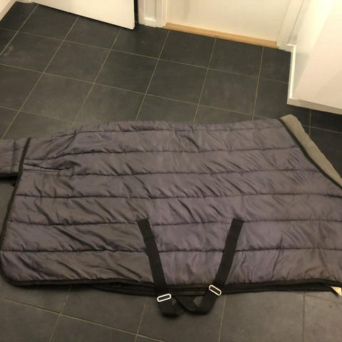 Ylletäcke Showmaster strl 135. Använt endast ett par gånger, ej tvättat så lite hästhår finns. Dubbla bogspännen, kryssgjordar och svansrem typ "skosnöre". Fixar fler bilder vid intresse.