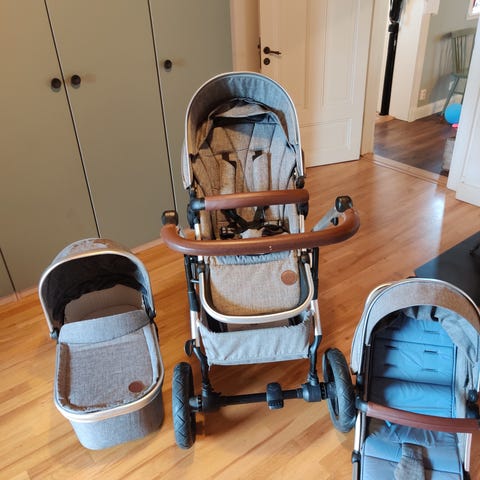 Petite Cherie barnvagn i mörkblå färg med brunt handtag. Max vikt 15kg. Skicka ej