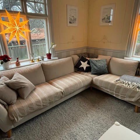 Soffan är relativt lätt och i två delar, där schäslongen hakas i stommen.